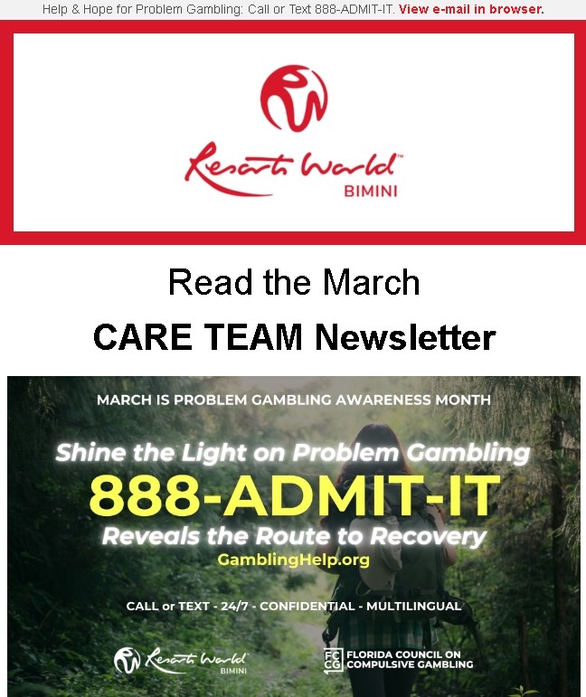 Resorts World Bimini – March CARE TEAM Newsletter – 03.26.25